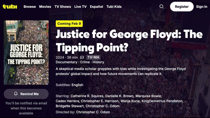 In Minneapolis, before Alex Pretti and Renee Nicole Goode, just four blocks away from where Renee Nicole Good was murdered, there was George Floyd. This Black History Month, join me on Monday, February 9, 2026 for the world premiere of my international and domestic multi-award-winning documentary “Justice for George Floyd: The Tipping Point?” streaming on Tubi. The documentary accumulated 38 honors, awards, and screenings during its worldwide film festival run. “Justice for George Floyd: The Tipping Point?” was made as part of my 3-part dissertation for my PhD in Texts and Technology Digital Media which consisted of a 1) 62,000 word written paper, 2) 34-minute documentary short film, and 3) collection academic artistic generative code-based works.